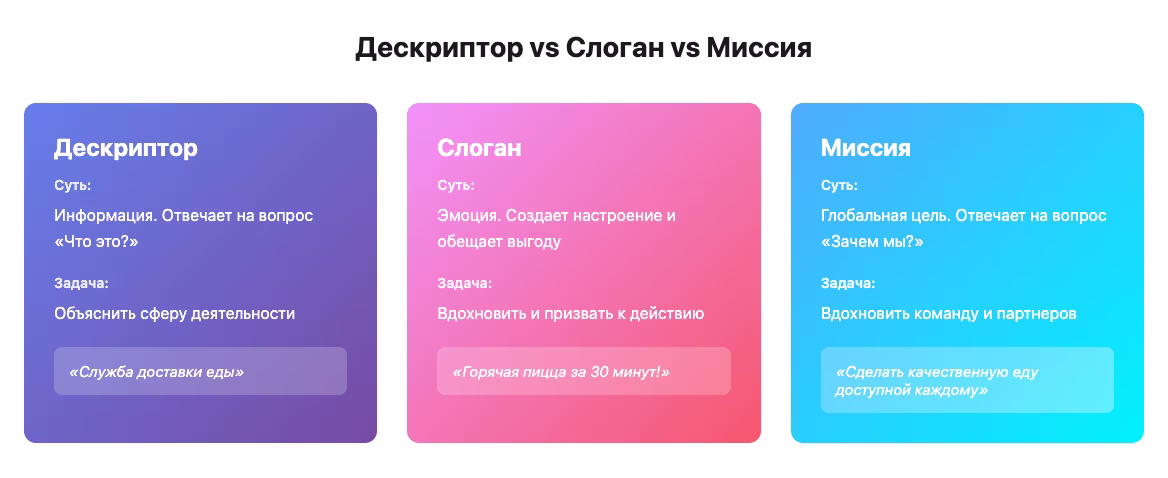 Дескриптор, слоган, миссия: в чем разница?