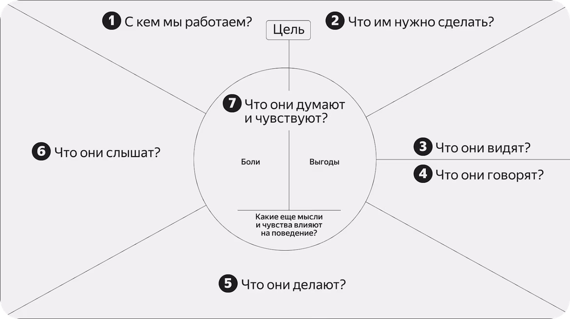 Вариаций таких карт масса, как и шаблонов, вот, например карта эмпатии от Яндекс Практикума: