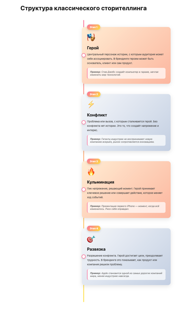 Бренды используют этот механизм. Они рассказывают истории о себе, своих продуктах, своих клиентах. Истории делают бренд живым, понятным, близким. Они объясняют ценности компании и показывают, почему она существует.