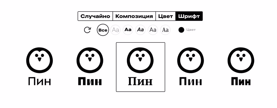 Мы разрабатываем логотип для благотворительного фонда по защите пингвинов «Пин» и хотим, чтобы в знаке был счастливый пингвин. Добавляем в описание компании слова «пингвин» и «улыбка».