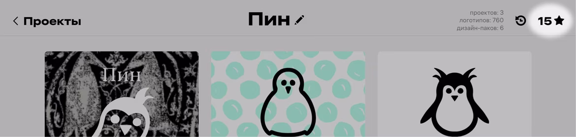 Чтобы не потерять классные логотипы, надо добавить их в избранное. Для этого нужно нажать на звездочку в правом верхнем углу логотипа.