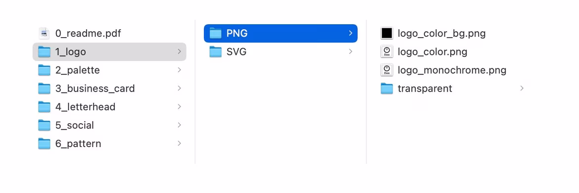 Осталось скачать дизайн-пак. В него входит логотип, цветовая палитра, пример визитки и делового письма, фирменный паттерн и все материалы для оформления соцсетей.
