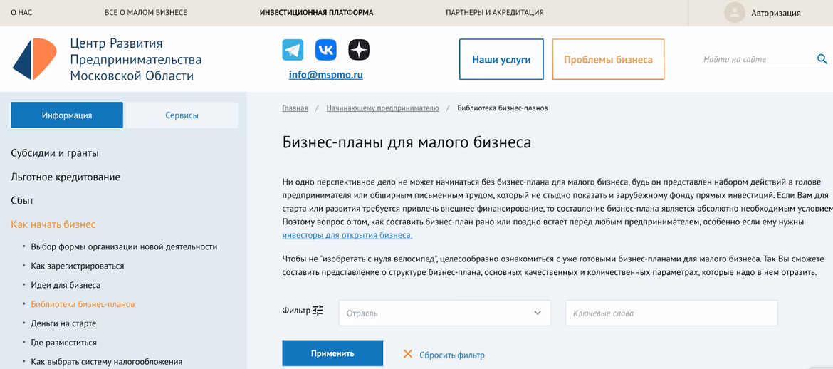 Шаблоны и примеры от Центра Предпринимательства Московской области можно найти здесь. От автобизнеса до сельского хозяйства – вы точно найдете что-то для себя.
