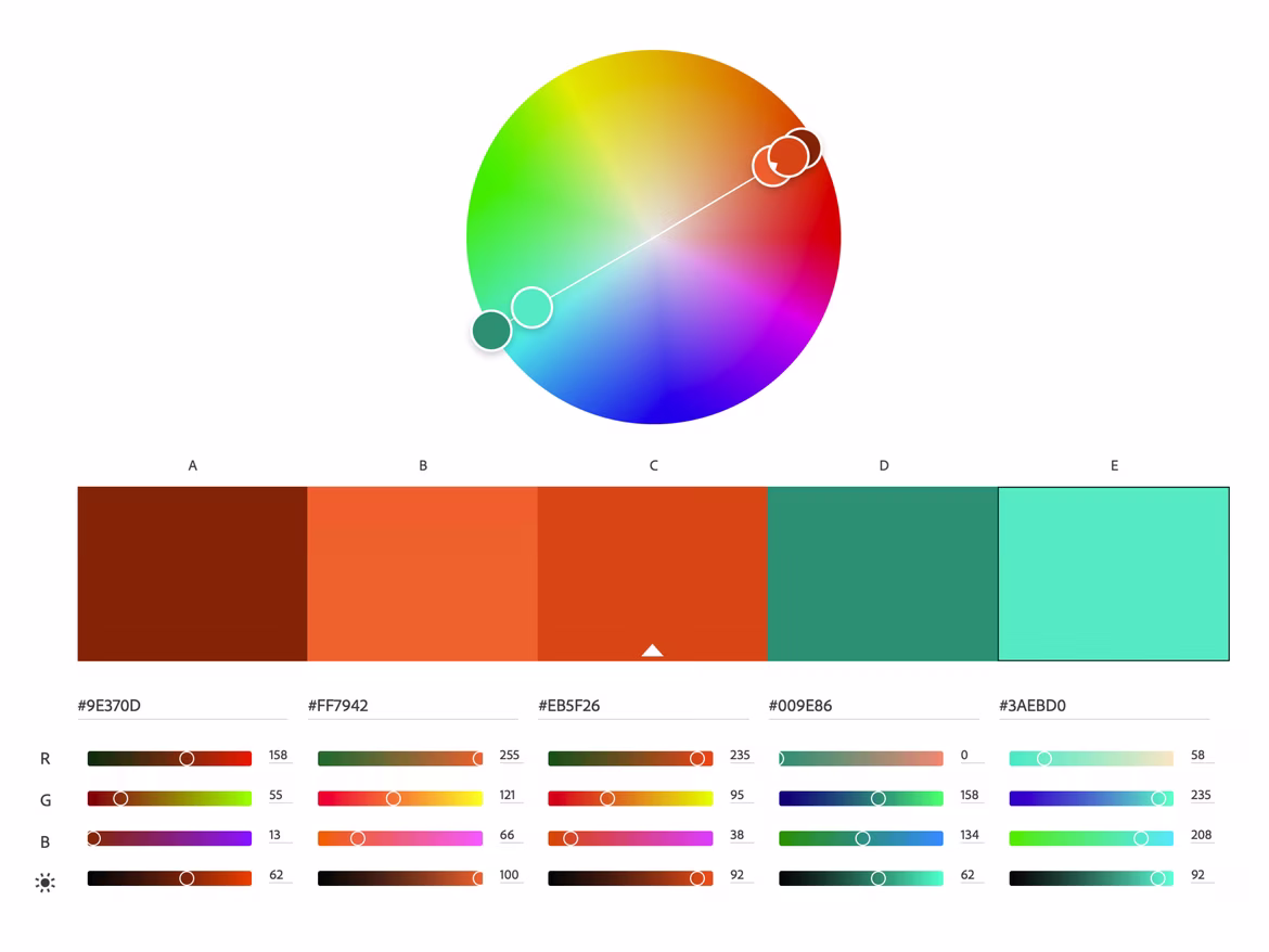 В нашей статье «Как выбрать цвет логотипа» говорится, что цвет логотипа допустимо делать любым. Изучив теорию цветовых сочетаний, целесообразно воспользоваться цветовым кругом или сайтами для подбора комплементарных цветов. Например, сайт Adobe Color отлично подбирает сочетающиеся цвета.